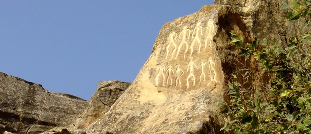 Рисунки были найдены на трёх участках скалистого плато, а обнаруженные здесь же некогда обитаемые пещеры, следы поселений и усыпальницы , указывают на густую заселённость этой территории в период между верхним палеолитом и средневековьем. В горах Беюкдаш и Кичикдаш в царстве скал – памятники первобытного искусства – древнейшие рисунки завораживают посетителей реальностью изображения и жизненностью. Эти каменные летописи, повествующие о далеких тысячелетиях, представляют собой несравненные исторические источники. На скалах Гобустана высечены, главным образом, изображения людей и животных. Высеченные на камнях руками наших предков углубления для привязывания животных, символы, следы ног на камне, алтарь, вырубленный на скале и другие артефакты, являются как бы сказанием далеких времен.